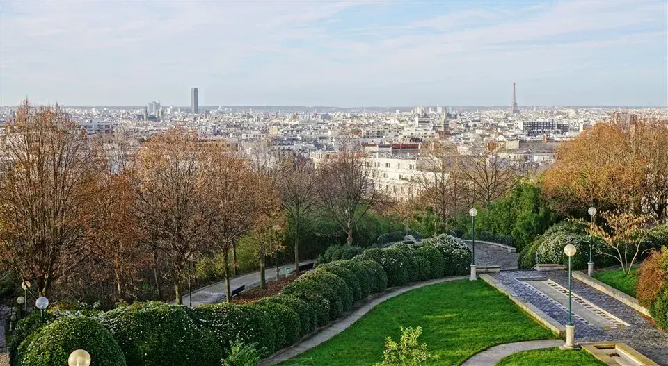 Es uno de los espacios verdes más recientes de la ciudad. Fue inaugurado en 1988 en medio de un barrio popular y sobre antiguas canteras. La colina que ocupa culmina a más de cien metros de altura y tiene en la cima una terraza panorámica. Desde allí se puede observar el trazado urbano de la misma manera que lo hace Juliette Binoche en la película París de Cédric Klapisch. Otra anécdota cinematográfica: medio siglo antes, cuando el parque todavía no existía, Albert Lamorisse filmó en el mismo lugar su inolvidable Globo rojo. La vista no era entonces tan despejada como ahora, pero siempre ha sido un buen apostadero para ver la ciudad entera desde su margen Noreste.