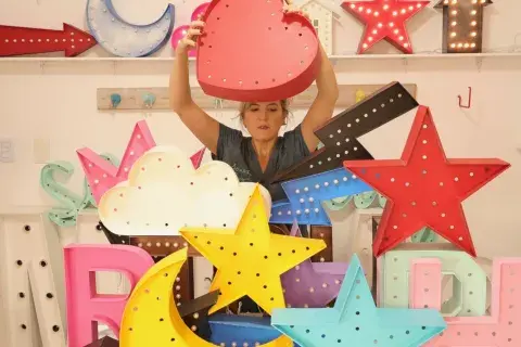 Somos Luz tiene sus cimientos en un regalo. "Siempre me gustó hacer regalos; cuando volví de India no tenía nada para regalarle a mis amigas, así que le di a una de ellas unas luces tailandesas que tenía y se enamoró". Entonces, con dos amigas comenzaron a diseñar, comprar y armar guirnaldas de luces que se vendían rápidamente. "A los dos años de empezar, me abrí del emprendimiento y fundé Somos Luz. Con la idea de comenzar a importar los productos que necesitaba para llevar a cabo el proyecto, mi hermano empezó a trabajar conmigo hasta 2018. El se encargaba de la importación de los cables de China y la decoración de Tailandia. Mientras, acá realizábamos el ensamble, el diseño de las formas y la venta mayorista del producto final."