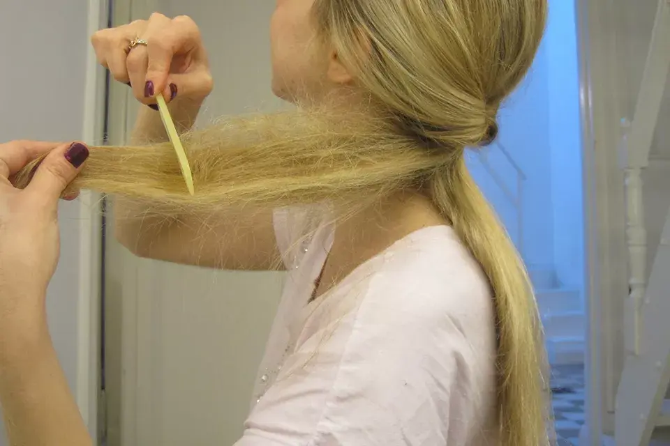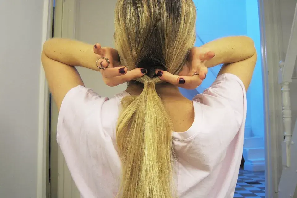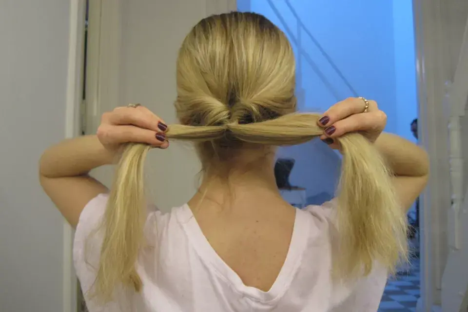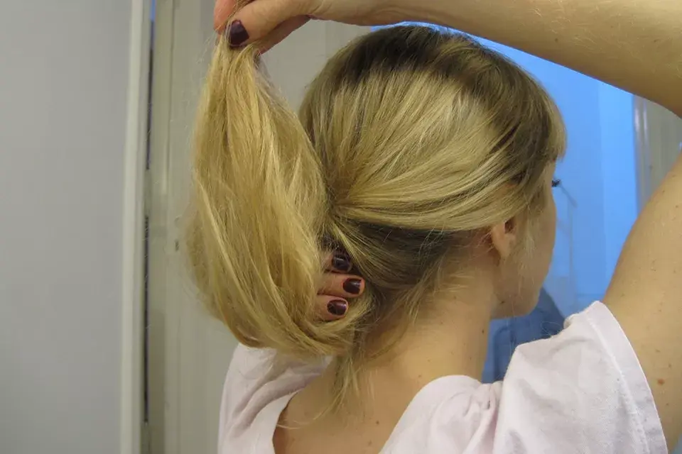 Paso 4: damos vuelta la colita y metemos el final del pelo adentro del hueco que nos quedó cuando la dimos vuelta en el paso 2.