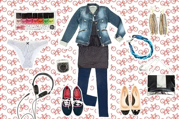 Campera con cierres (inversa,$398). Vestido con volados(47 Street, $299). Jeggings (Portsaid, $250). Zapatillas (Seco, $350). Balerinas bicolor(Lucerna,$329). Vedetina (Sweet lady,$75). Aros(Ver,$30). Pulsera(Maria Rivolta,$70). Bandolera combinada(Muaa,$240). Set de esmaltes(Muaa,$75). Headphones(Sony,$149). Anillo(Muaa,$25).