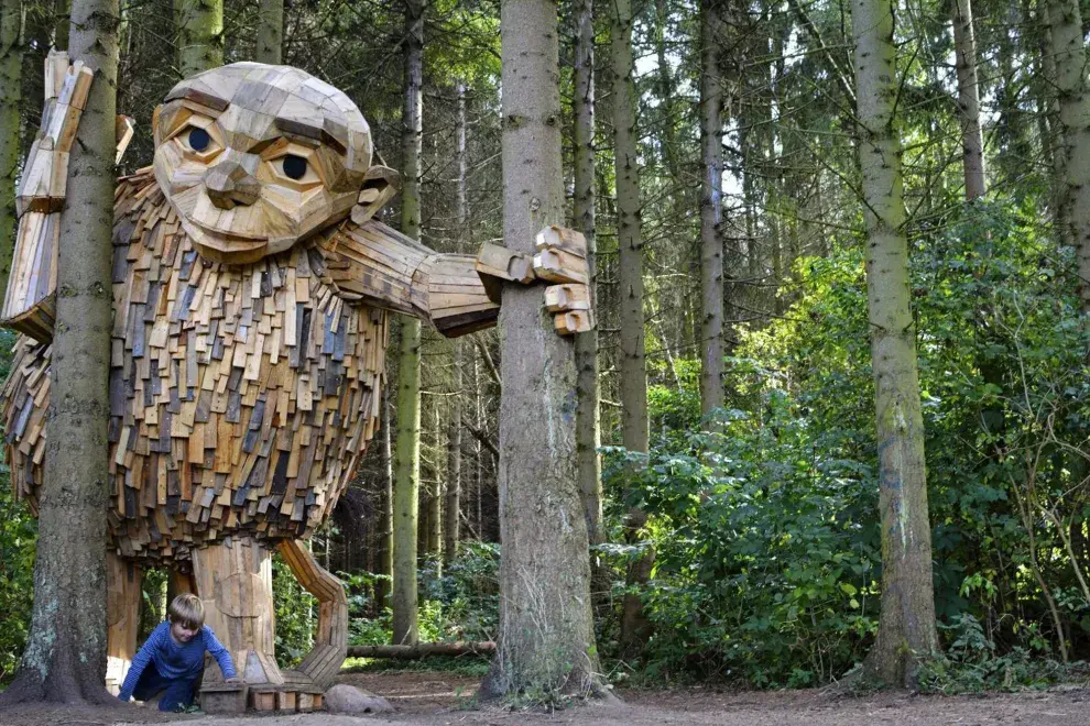 Como en una gran búsqueda del tesoro, seis grandes esculturas en madera esperan ocultas e incentivan a explorar los espacios verdes de la capital de Dinamarca