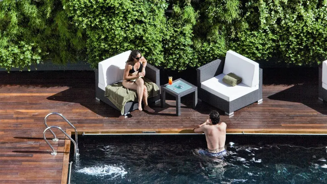 Relax junto a la pileta del Novotel, en la avenida Corrientes
