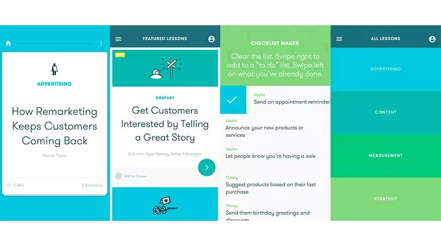 Se trata de Primer, una plicación que nos permite aprender habilidades de marketing como publicidad, contenido, métricaS y estrategia. Incluso, cuando estamos desconectados. El formato es muy interesante: consiste en lecciones breves sobre mercadotecnia, de no más de 5 minutos, estemos donde estemos. Ellas se van actualizando, al ofrecernos temas nuevos todos los días. Cada lección es seguida de un sencillo trabajo práctico, para que podamos aplicar el contenido en nuestra situación y, de este modo, reafirmar el aprendizaje.