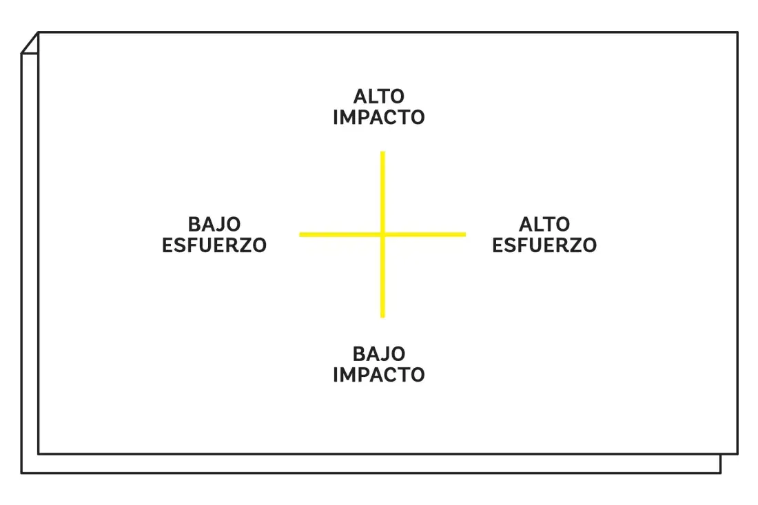 Ordenar las prioridades es un temón: las personas no sabemos priorizar, hacemos cualquier cosa secundaria durante mucho tiempo del día en vez de focalizarnos en lo importante. Acá va un ejercicio para priorizar: dibujá una cruz y en cada punta escribí "alto impacto", "bajo impacto", "alto esfuerzo" y "bajo esfuerzo". Ahora, en cada uno de esos cuadrantes vas completando con todas las actividades que querés concluir durante el día. Es muy revelador ver cómo usamos buena parte del tiempo en hacer cosas que tienen bajo impacto y nos demandan alto esfuerzo. La solución es tomar decisiones tendientes a usar la sección de arriba del cuadrante y menos la de abajo.
