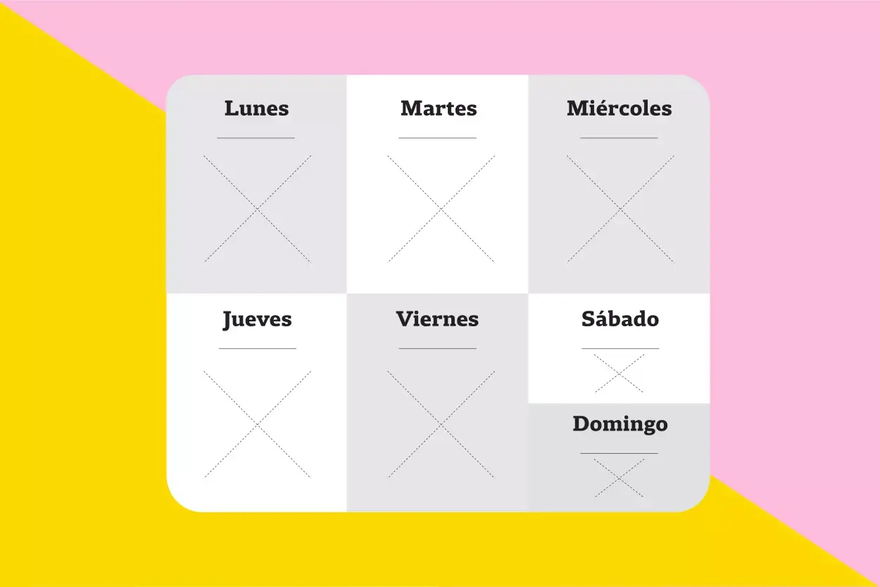 ¿Te acordás del cómico Jerry Seinfeld? A él se le adjudica este método para crear una rutina y generar hábitos casi sin darnos cuenta. Para hacerlo, necesitás un calendario en papel bien grande que quede en un lugar muy visible, de manera que te lo encuentres varias veces al día. Cada noche, antes de meterte en la cama, tachá la fecha del día correspondiente con una cruz en algún color bien llamativo, pero solamente si cumpliste con todos los objetivos que tenías para el día. ¡No hagas trampa! Si no cumpliste, ese día quedará sin su marca. Vas a ver que se va a convertir en un desafío poder tachar todas las noches tu casillero y te va a molestar, aunque sea solo visualmente, cada día que no esté marcado. De forma inconsciente vas a ir creando una rutina y querrás ir tachando cada uno de los casilleros. Para que este método funcione, es importante que el calendario sea en papel, no digital.