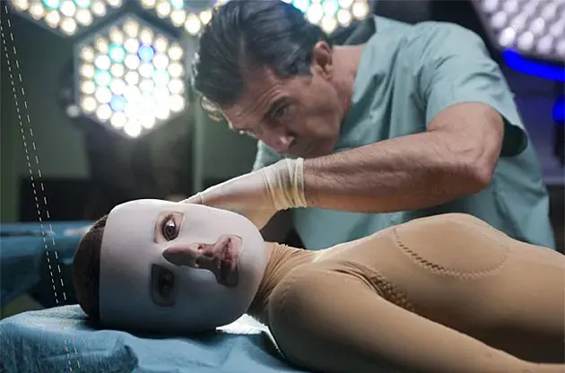 Rescato para el final, porque me pareció excepcional, el vestuario. El encargado fue mi querido diseñador Jean Paul Gaultier, que también hizo el vestuario para la película Kika. Esta vez, se consagró con los bodies color piel y negro, diseñados especialmente para el calce perfecto en el cuerpo de la actriz Elena Anaya, cuya cara y cuerpo son un sueño. Impactante combinación de belleza, estilo, originalidad y seducción. Porque pese a estar todo el cuerpo cubierto, estos trajes son un llamado a descubrir qué hay por debajo.