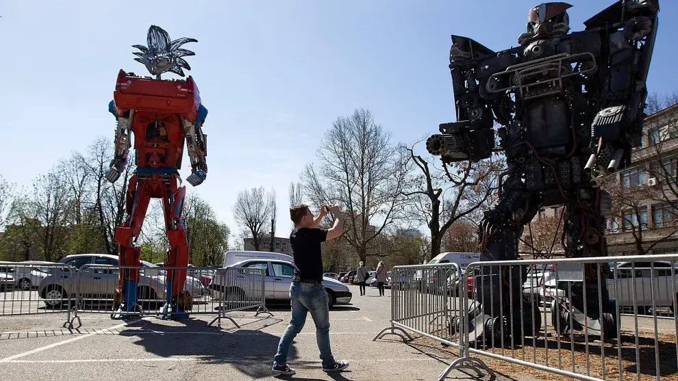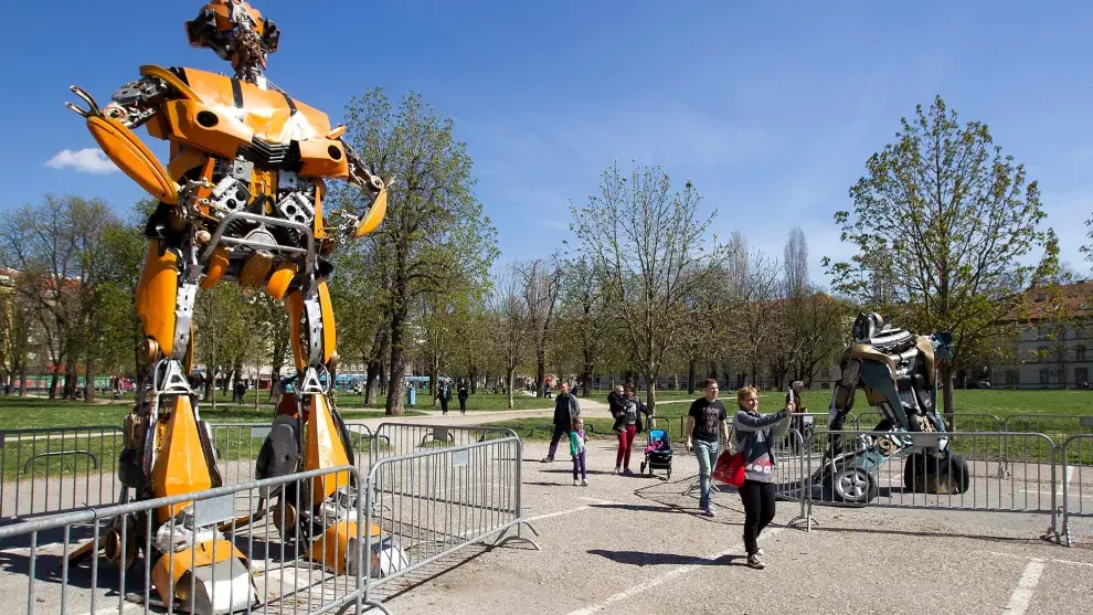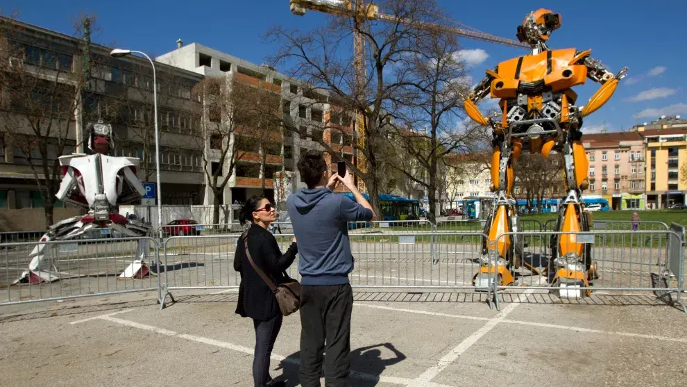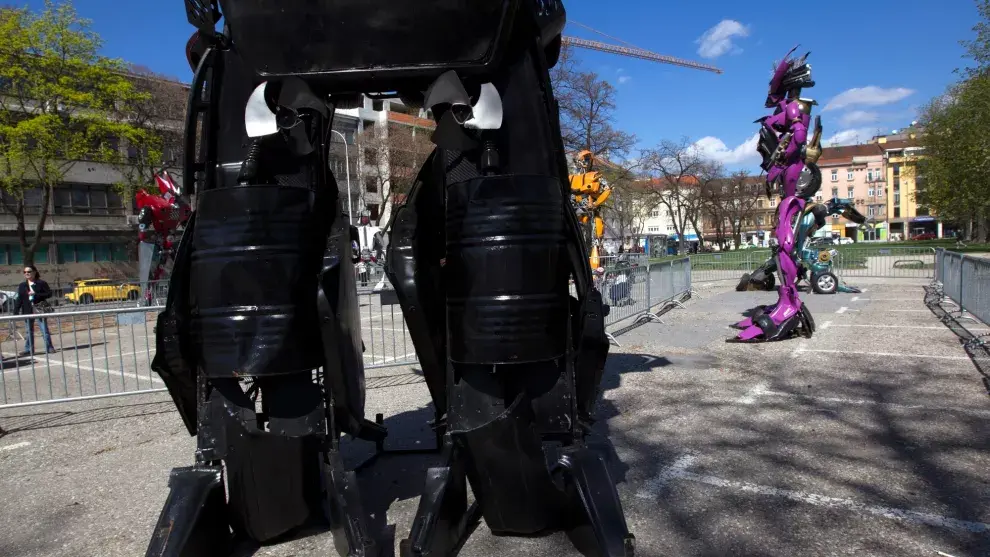 Tienen ocho metros de altura, pesan unos 2,5 toneladas cada uno y están fabricados de autos de chatarra. Son los Transformers gigantes creados por el artista montenegrino Danilo Baletic, que están expuestos en una céntrica plaza de Zagreb.