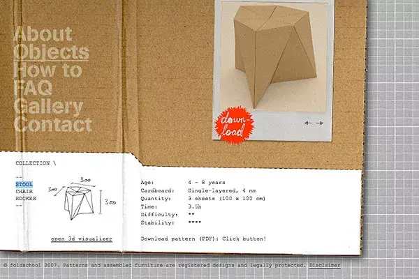 Ani Bangueses me acercó este material para publicar en OHLALA!, pero pensé que podía compartirlo con ustedes antes. Se llama Foldschool y se trata de un proyecto que combina cultura masiva, ecología y "hágalo usted mismo". El resultado son muebles para chicos hechos artesanalmente en cartón corrugado, una suerte de diseño industrial estilo origami.