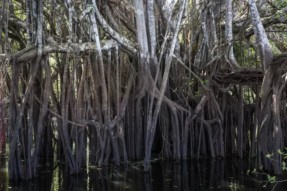 Iquitos tiene un pulso intranquilo, con prestadores turísticos al acecho y gringos que tomaron –o tomarán– la carretera hacia Nauta, donde probaron –o probarán– ayahuasca en busca de un estado superior. Las chicas usan pantalones holgados. Los chicos, musculosas y ojotas. Muchos se tatuaron deidades hindúes en la espalda o la muñeca. Locales y visitantes se mezclan en el Malecón Taracapá, la costanera intervenida por una vegetación invasiva y arrogante. El paseo va revelando estatuas de los héroes locales –educadores con libros, luchadores con escopetas– y homenajes a “la misión de evangelio y la dignificación de la persona humana”, además de las tres hileras de casas que están entre la calle y el río, algunas elevadas con pilotes para capear las inundaciones. Ahí abajo, un barco de pasajeros, gigante y oxidado, quedó encallado en una pose apocalíptica.