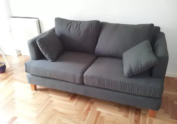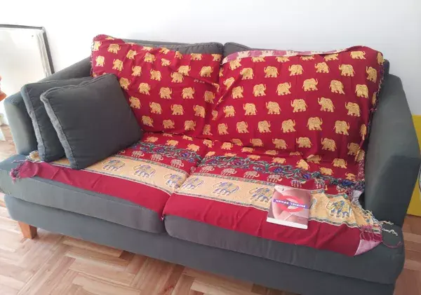 Guardaron el otro (que estaba envuelto en film y cubierto con dos frazadas) y bajaron el mío, que vino semidesnudo, sin nada que lo tape más que una mantita que no llegaba a cubrirlo todo. El sillón es de tela y yo intentaba no pensar en todos los muebles que había tenido encima en ese camión.