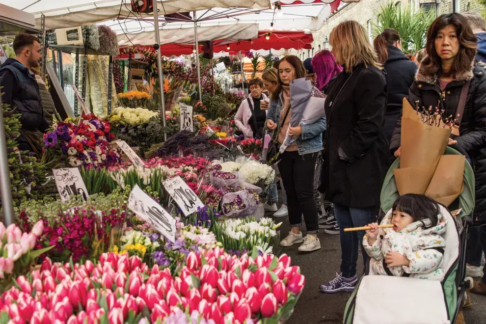 Rosas negras, ananás rosados, orquídeas gigantes y peonías de todos los colores son algunas de las plantas excéntricas que vas a encontrar en Columbia Road Market, el mercado de las flores. Lejos de ser comercial, esta es una feria de vendedores que despliegan su magia en la vereda de esta calle del barrio de Bethnal Green, en el este de la ciudad. Cada domingo a la mañana los productores llegan con sus camionetas cargadas de flores: el objetivo es quedarse sin nada al final de la jornada.