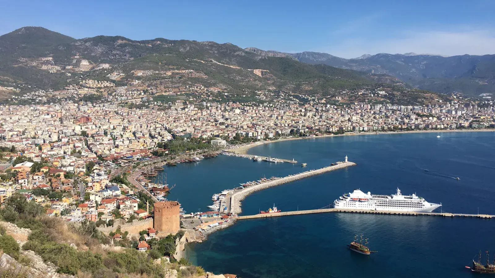 Mucho más pequeña, Alanya se recuesta sobre una bahía dominada en lo alto de una colina por su castillo medieval, como el nido de un águila corona una roca. Hoy es un museo al aire libre con imponentes vistas sobre el mar y las casitas de colores que cuelgan del promontorio rocoso. De noche, eso sí, la zona del puerto se convierte en un bullicioso paseo entre bares y discotecas con nombres del tipo Miami Club, James Dean o Latin Club.