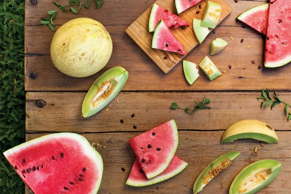 Cortar el melón sobre su piel en forma recta y en tamaño de bocados.
