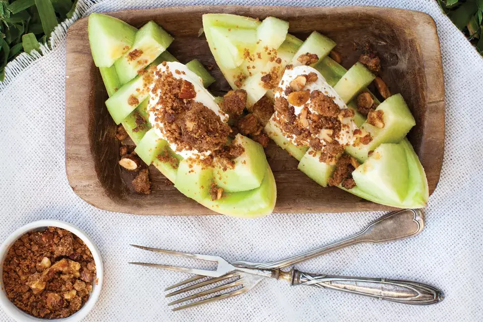 Melón con crocante de almendras