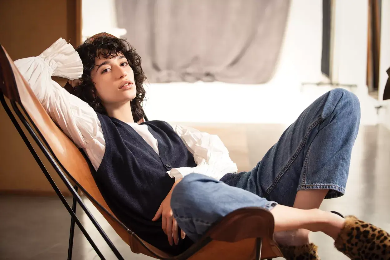 Chaleco de lana, Giesso, $6986. Camisa, Prüne, $4990. Jean, Levi’s, $6980. Mules, María Bettaglia, $4850.