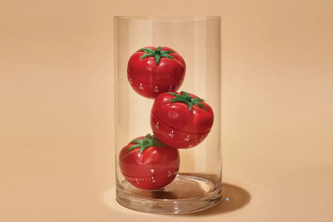 Consiste en dedicar un tiempo de concentración absoluta a una tarea (generalmente, de 25 minutos), sin ningún tipo de interrupción. Luego de cada bloque pomodoro, se sucede un período de pausa corta (suele ser de 5 minutos). Un pomodoro no se puede pausar ni dividir; si no es posible postergar la interrupción, el pomodoro se cancela para luego reiniciarlo. Para esto es necesario eliminar cualquier tipo de agentes de distracción tales como el celular o la consulta de redes sociales mientras realizamos la tarea.