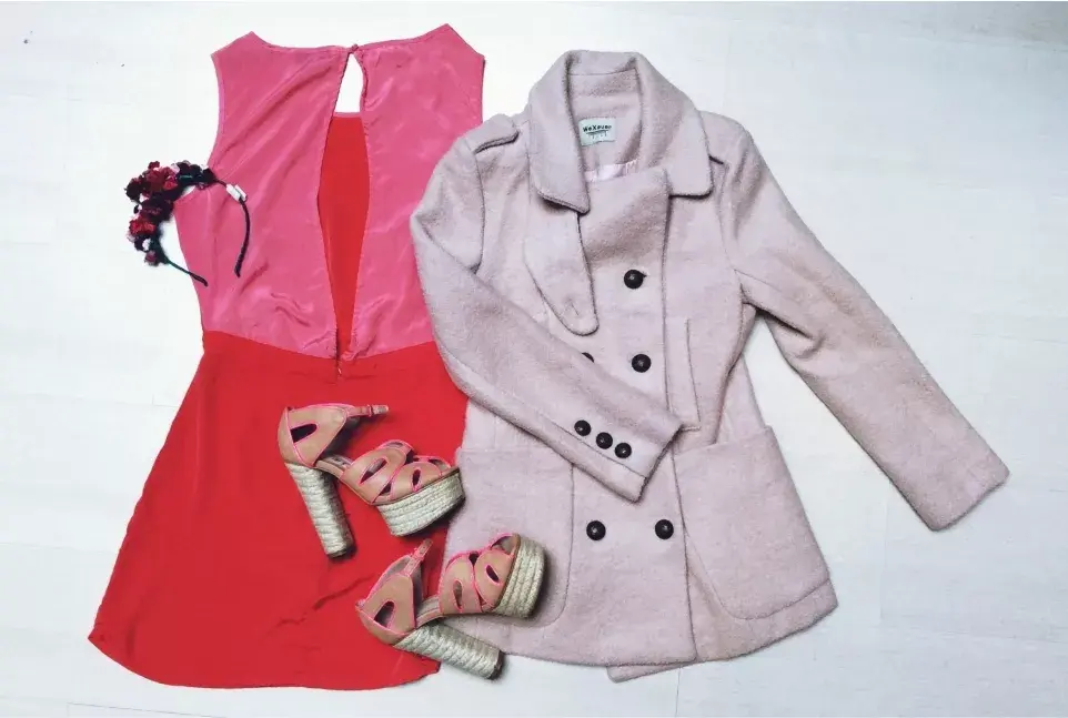 Vestido $140, saco de paño $400, vincha $30, zapatos $180.