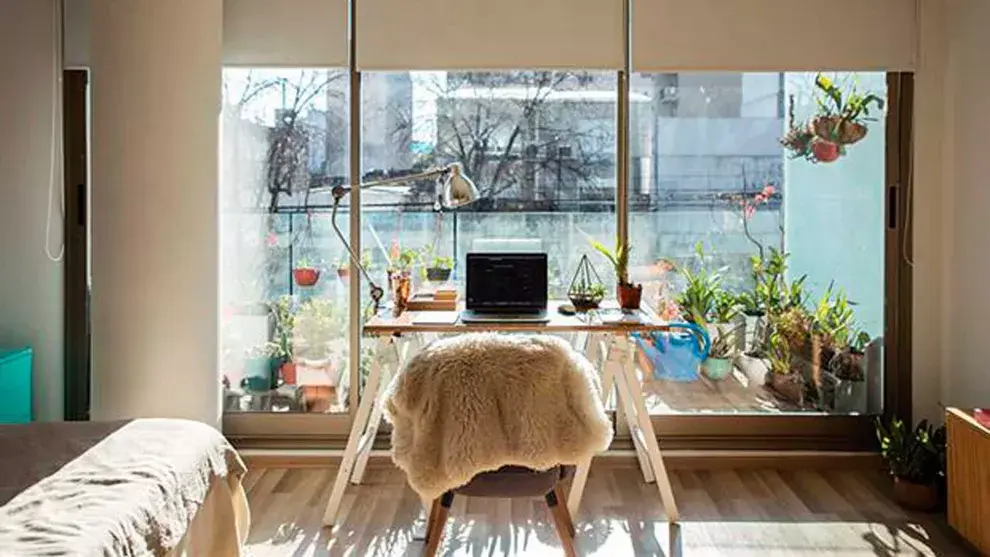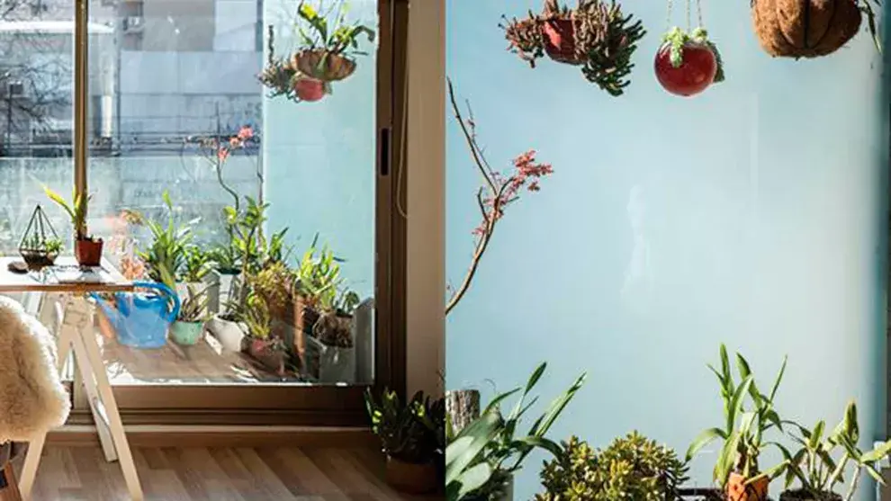 Lucía Monti es fotógrafa, socia de Glas, y vive con su novio en este monoambiente que es pura luz natural y verde, lo que para ella era clave. Al principio, le costaba imaginar la vida de a dos en un depto sin divisiones, pero muy rápido le encontró la vuelta y ahora le encanta: "Me encariñé con la idea del espacio chico: te ordena, te cambia la perspectiva y es un súper reto para la convivencia".
