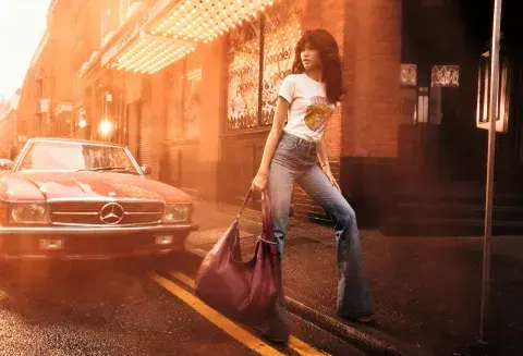 La colección es protagonizada por jeans poderosos, maxivestidos, camisas de satín suntuosas y trajes de cintura alta, pantalones de pierna ancha y blazers con cintura avispa, que se vuelven una declaración de intenciones. Prendas elevadas por una paleta con colores como el crema, el azul marino, el borgoña y el rojo Cabernet. Las tiras de arcoíris y los estampados multicolor, inspirados en el zodiaco, le imprimen frescura a esta línea exclusiva.