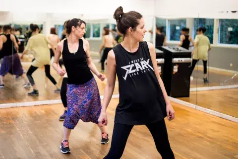 "Y un, dos, tres, cua...": Paz, la profesora, empezó con una entrada en calor en la que íbamos repitiendo pequeños pasos característicos del house, que en ese momento comprobé que es una fusión de varios estilos: hip-hop, funk, salsa, disco y hasta tap. La mayoría de los movimientos pautados son de la cintura para abajo, muy chiquitos, cortos y bastante simples. Lo complicado es la velocidad: los 8 tiempos que tardábamos 5 minutos en aprender, con música duraban ¡3 o 4 segundos! Así y todo, pude acompasarme bastante bien al ritmo de la clase y llegué al final habiendo aprendido una coreo de unos 30 segundos, pero que para mí fue como haber corrido un maratón. Es que el house es un estilo de baile que parece súper cool, relajado y canchero, pero en el que cada cosa está milimétricamente calculada.