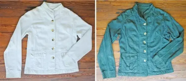 Lo que hicimos fue teñir la prenda entera, queríamos lograr un verde militar. Pero la marca Colibrí no tiene ese color exacto, asique mezclamos en iguales proporciones el color verde oscuro y marrón oscuro. Teñimos siguiendo las instrucciones del paquete y como les mostramos en el post: http://www.revistaohlala.com/1624906-reciclando-el-guardarropa-tenido-en-degrade