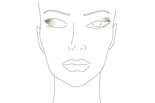 Hacemos un esfumado en el final del ojo marcando una especie de V corta y lo mismo sobre el parpado inferior con una sombra mate marrón oscura.