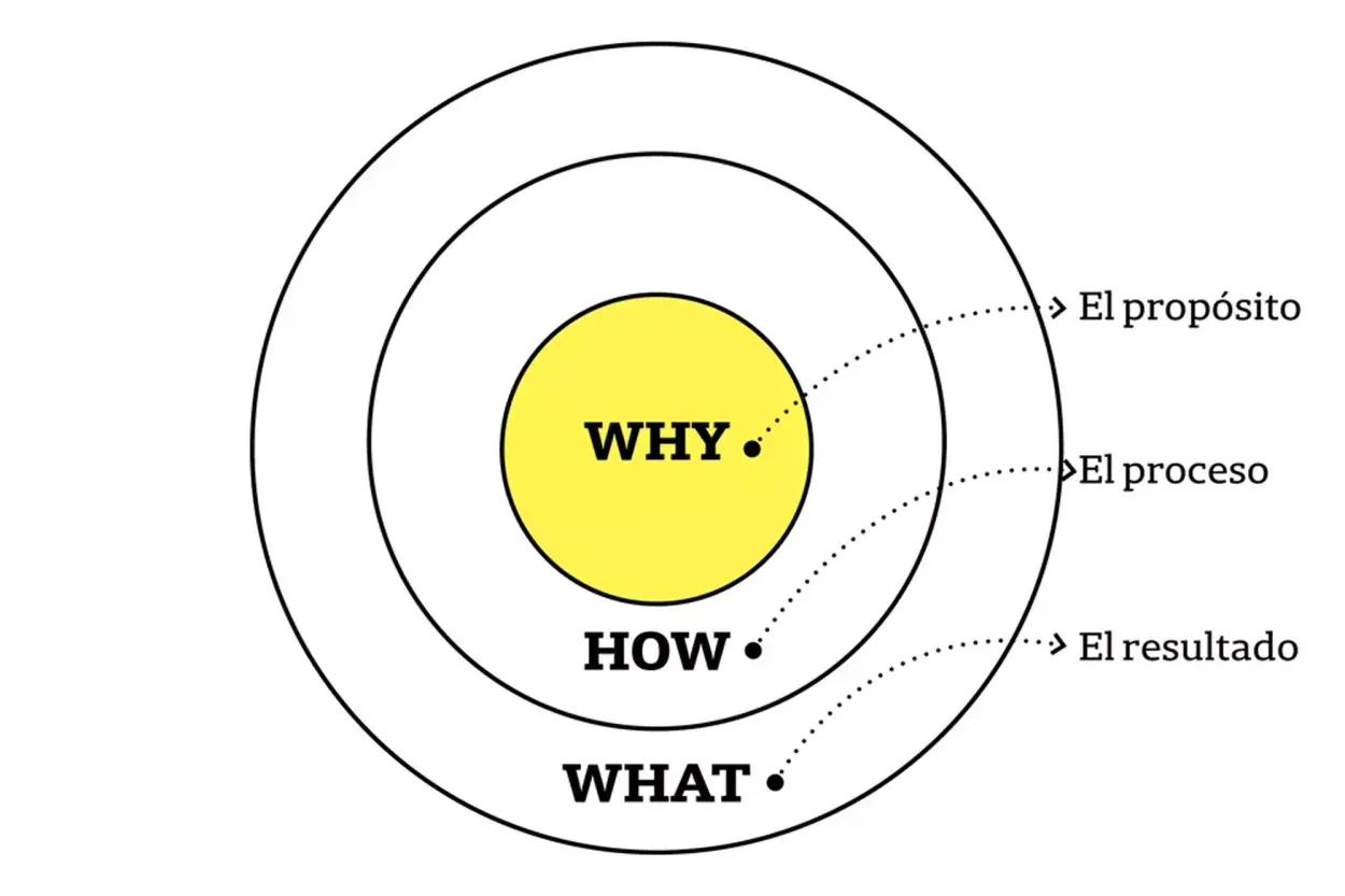 Simon Sinek es el autor y speaker británico que creó y desarrolló la teoría de los círculos dorados, que propone que a la hora de trabajar y comunicar nuestros proyectos, en vez de enfocarnos en el "qué", nos enfoquemos en el "para qué" o el "por qué". Así, las tres preguntas clave que tenemos que respondernos son: ¿qué hace la empresa? (What?), ¿cómo lo realiza o qué procesos sigue? (How?) y la más importante: ¿cuál es su misión? (Why?). Esta última es la que muchas marcas no consiguen responder y, sin embargo, es la más poderosa, porque comunica muestra misión. Por esa razón, decir "yo quiero que mi consumidor/usuario viva/sienta/experimente..." es un buen comienzo para tratar de encontrar el "para qué" de tu emprendimiento, un concepto que con el tiempo puede transformarse en el mayor diferencial de tu marca.