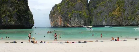 La paradisíaca Maya Bay, famosa por la peli de Leo DiCaprio The beach. Actualmente se encuentra cerrada indefinidamente para intentar preservarla.