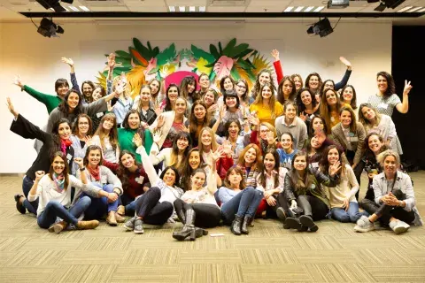 Ahí sí, fue momento de poner manos a la obra. La primera consigna fue escoger un pin (había cuatro opciones a elegir: ciervo, colibrí, lobo y mariposa), ponérnoslo y formar grupo con las que habían elegido el mismo pin. Una vez agrupadas, nos dieron dos hojas, una lista a completar con características personales de las chicas de otros grupos para relacionarnos y conocernos más, y otra hoja con tareas a resolver, como sacarnos una selfie en el baño todas juntas, juntar 10 labiales, hacer un avión de papel, completar un titular del diario del día y lo más divertido: hacer una coreo con un tema de moda que represente el espíritu de nuestro animal.