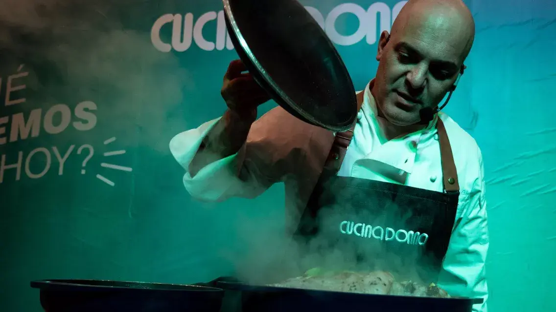 Suele pasar que "hasta no ver, no creer". De la mano del cocinero y conductor de televisión Santiago Giorgini vimos in situ una preparación de un pechito de cerdo con barbacoa y batatas, y de postre una torta de vainilla con dulce de leche y naranja.